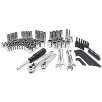 Includes 72 6 point sockets in 1/4", 3/8", and 1/2" drive sizes; 22 screw and nut driver bits; 14 hex keys; 2 quick release ratchets; and 4 wrenches