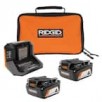 • RIDGID 18V Lithium-Ion (2) 4.0 Ah Battery Starter Kit with Charger and Bag (AC93044SBN)