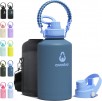 64-Oz Water Bottle with 2 Lids (2-in-1 Straw & Spout Lid, Magnetic Lid) (3 Colors)