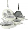 10-Piece Sur La Table Kitchen Essentials Non-Toxic Titanium Ceramic Nonstick Aluminum Cookware Set - Linen White