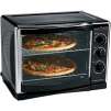 This countertop convection oven is great for small kitchens or doubles as a second oven. The extra-large capacity allows you to quickly cook everything from a 5-pound chicken to a small roast or two 12'' pizzas. The Hamilton Beach Countertop Oven features functions that range from baking and broiling to convection.Hamilton Beach Convection Oven: Constructed from steel with stainless-steel accentsEasy-to-clean enamel interiorTraditional dial controls for easy useFeatures a 120-minute timer and auto shut-offThis Hamilton Beach Oven cooks up to 33% faster with convectionFan circulates heated air around food to speed cookingThe convection oven's extra-large capacity fits two 12'' pizzasIncludes two oven racks and bake pan1500 wattsModel# 31197R