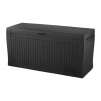 Never compromise your style when looking for form and function in your outdoor living space. With the 71 gal (9.5-cu ft) Comfy Storage Deck Box, you can enjoy both this season! This small to medium sized garden bench box maximizes storage space and increases patio seating capacity while providing an attractive focal point to your garden or patio.