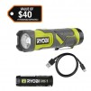 600-Lumen RYOBI USB Lithium Cordless Compact LED 3-Mode Flashlight Kit with 2.0 Ah Battery and Charging Cable