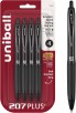4-Pack uniball 207 Plus+ Retractable Gel Pens, Medium Point, 0.7mm, Black Ink