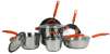 This Rachael Ray Cookware set comes complete with a 1.25 quart covered saucepan, a 2.5 quart covered saucepan, a 6.5 quart covered stockpot, a 3 quart covered sauté pan, an 8.5" skillet and a 10" skillet.