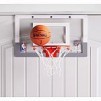 This over-the-door backboard lets you practice your deep threes wherever there's a door and a dream. A quarter-scale replica of the official NBA backboard, it includes a clear durable polycarbonate board and steel breakaway rim. This unit includes a ball and all 30 NBA team stickers to customize your board. Pump not included.