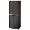 Organize with ease! The durability, modularity, and simplicity of Sterilite’s 4 Shelf Cabinet makes it the ideal solution for basements, attics and garages. The trend forward Flat Gray color is both sleek and refined and complements a variety of living areas, offering additional storage options for pantries, utility /laundry areas, dorms and mudrooms. The Sterilite 4 Shelf Cabinet features doors that swing open easily, close securely and can accommodate a standard padlock. With four rugged adjustable shelves to optimize your storage space - ideal for organizing painting, gardening, car supplies, laundry essentials, sporting gear, and workshop items. Heavy duty plastic will not dent, chip, peel or rust, ideal in a challenging environment. The Cabinet assembles easily in minutes without the use of tools, simplifying your organizational project. Create a custom storage solution with other Sterilite Hardware items, such as the 5 Shelf Shelving Unit, 4 Shelf Shelving Unit, and 4 Drawer Unit. The overall assembled dimensions of this item are 69 3/8" H x 25 5/8" W x 18 7/8" D.