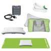 Kit includes: 1 pair of textured foot socks, Rechargeable battery pack, USB charging cable, Jeli sleeves, Fitness mat, and Travel bag
